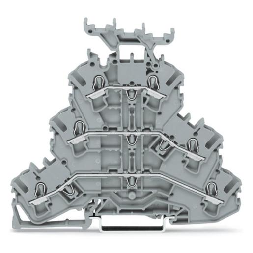 Dreistockklemme Durchgangs-/Durchgangs-/Durchgangsklemme L/L/L mit Beschriftungsträger für Anwendungen Ex e II geeignet für Tragschiene 35 x 15 und 35 x 7,5 2,5 mm² Push-in CAGE CLAMP® 2,50 mm² grau