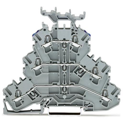 Dreistockklemme Durchgangs-/Durchgangs-/Durchgangsklemme L/L/N mit Beschriftungsträger für Anwendungen Ex e II geeignet Leitereinführung OG, blau bedruckt für Tragschiene 35 x 15 und 35 x 7,5 2,5 mm² Push-in CAGE CLAMP® 2,50 mm² grau
