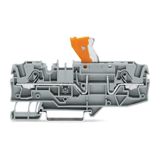 2-Leiter-Trennklemme mit schwenkbarem Trennmesser mit Prüfmöglichkeit Trennmesserhalter orange für Tragschiene 35 x 15 und 35 x 7,5 6 mm² Push-in CAGE CLAMP® 6,00 mm² grau