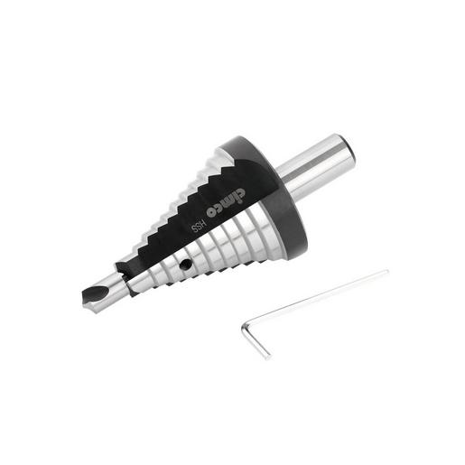 HSS-Stufenbohrer, speziell für Kabelverschraubungen in der Elektromontage, Perfekt runde und zylindrische Löcher in verschiedenen Durchmessern, Zentrieren, Anbohren, Aufbohren und Entgraten in einem Arbeitsgang, geeignet für den Einsatz in Hand- und Ständerbohrmaschinen in Handwerk und Industrie, für Bleche und Platten, Profile und Rohre aus Stahl, Messing, Kupfer, Aluminium, V2A-Stahl, Kunststoff, Holz, etc. bis 3 mm Stärke. Aufnahmeschaft 12 mm Durchmesser, dem Härten zusätzlich TIN-(Titannitrid-) beschichtete Oberflächen sind extrem hart und glatt. Höhere Schnittgeschwindigkeit erlaubt schnelleres Arbeiten, geringerer Verschleiß bringt 5- bis 10-fach längere Standzeit