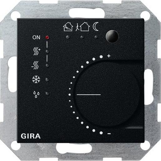 KNX Stetigregler mit Tasterschnittstelle 4fach System 55 Schwarz matt Die Stetigregler Unterputz und die Objektregler vereinen die Funktionen eines KNX Busankopplers, eines Raumtemperaturreglers mit Sollwertvorgabe und die eines Binäreingangs. Merkmale: An den Binäreingang können vier potenzialfreie Kontakte angeschlossen werden. Der Eingang 1 kann zum Anschluss eines Fernfühlers für die Temperaturmessung im Fußboden benutzt werden. Zwei Eingänge sind als Ausgänge (max. 0,8 mA) parametrierbar. Die Reglerfunktion dient zur Raumtemperaturregelung. Der Regler erfasst mit einem internen bzw. externen Temperaturfühler die aktuelle Raumtemperatur und verarbeitet diese mit einem einstellbaren Temperatursollwert zu einer Stellgröße. Es können damit Stellantriebe mit stetigem Stellsignal als auch mit schaltendem Stellsignal angesteuert werden. Regler: 5 Betriebsarten: Komfort, Stand-by, Nacht, Frost- bzw. Hitzeschutz und Reglersperre (z. B. Taupunkt-Betrieb). Heiz- Kühlfunktionen: Heizen, Kühlen, Heizen und Kühlen, Grund- und Zusatzheizen, Grund- und Zusatzkühlen. Voreingestellte Regelparameter für gängige Heiz- bzw. Kühlkörper. Regler abschaltbar (Taupunktbetrieb) bzw. Regler oder Bedienung des Reglers sperrbar. Ventilschutzfunktion (Ventil wird zyklisch alle 24 Stunden geöffnet). Regelungsarten: Stetige PI-Regelung, schaltende PI-Regelung (PWM) und schaltende 2-Punkt-Regelung (Ein Aus). Temperaturerfassung über einen internen und oder externen Fühler (Mittelwertbildung für große Räume). Eingänge: Freie Zuordnung der Funktionen Schalten, Dimmen, Jalousie und Wertgeber zu den Eingängen. Sperrobjekt zum Sperren einzelner Eingänge. Verhalten bei Busspannungswiederkehr für jeden Eingang separat parametrierbar. Telegrammratenbegrenzung. Funktion Schalten: zwei unabhängige Schaltobjekte für jeden Eingang vorhanden und einzeln freischaltbar, Befehl bei steigender und fallender Flanke unabhängig einstellbar (EIN, AUS, UM, keine Reaktion). Funktion Dimmen: Einflächen- und Zweiflächenbedienung, Zeit zwischen Dimmen und Schalten und Dimmschrittweite einstellbar, Telegramm-Wiederholung und Stopp-Telegramm senden möglich. Funktion Jalousie: Befehl bei steigender Flanke einstellbar (keine Funktion, AUF, AB, UM), Bedienkonzept parametrierbar (Step – Move – Step bzw. Move – Step), Zeit zwischen Kurz- und Langzeitbetrieb einstellbar, Lamellenverstellzeit einstellbar. Funktion Wertgeber und Lichtszenennebenstelle: Flanke (Taster als Schließer, Taster als Öffner, Schalter) und Wert bei Flanke parametrierbar, Wertverstellung bei Taster über langen Tastendruck für Wertgeber möglich, Lichtszenennebenstelle mit bzw. ohne Speicherfunktion. Funktion Temperaturfühler: Ein Kanal der Tasterschnittstelle kann als externer Temperaturfühler für den Raumtemperaturregler genutzt werden. Ausgänge: Unabhängiges Schalten der max. zwei Ausgänge. Mit dem Stellrad wird der Temperatursollwert verschoben. Ein Präsenztaster dient zur Umschaltung zwischen Komfort- und Stand-by-Betrieb. Die aktuellen Zustände werden am Stetigregler durch LEDs angezeigt. Hinweise : Es ist kein separater Busankoppler notwendig. Bei Anschluss der externen Eingänge wird die Verwendung einer Schalterklemmdose empfohlen.