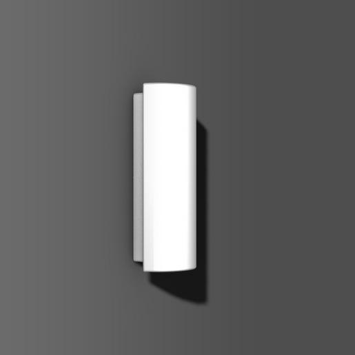 Klassische Wandleuchte mit halbrundem Glas. Armatur Kunststoff. Mundgeblasenes Opalglas seidenmatt. Glasbefestigung mit Federsystem.