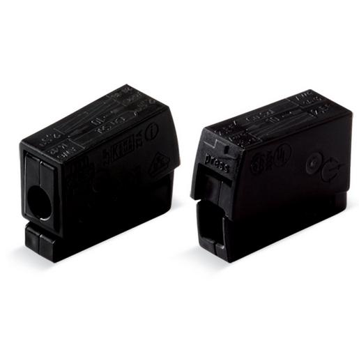 Leuchtenklemme Drücker Leuchtenseite Leuchtenseite: für alle Leiterarten Inst.-Seite: für eindrähtige Leiter Serie 224 max. 2,5 mm² Umgebungstemperatur max. 75 °C 2,50 mm² schwarz