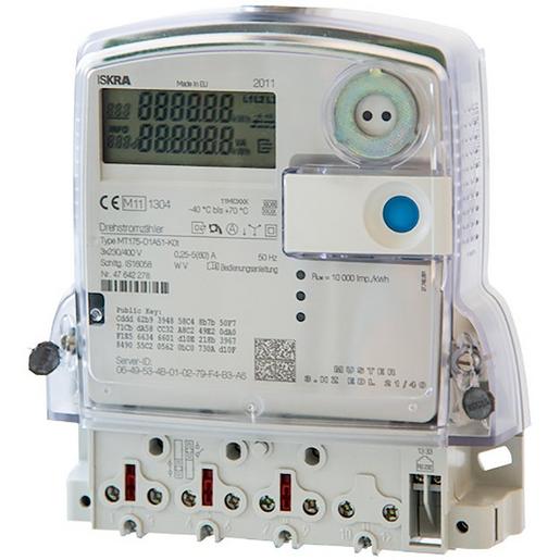 KDK fabrikneuer elektronischer Drehstromzähler, entspricht einer modernen Messeinrichtung (mME) nach FNN, Ersatz (1:1) für Induktionszähler (Ferraris), Zweitarif, LCD-Anzeige, Energieanzeige 6,1 stellig, Momentanleistung 2,2 stellig, Strombereich: 0,25-5(60)A, Spannungsebene: 3*230/400V, Genauigkeitsklasse 2 bzw. MID Klasse A, mit Rücklaufsperre, mit MID-Konformitätserklärung, mit Klemmendeckel, Gehäuse: ISO