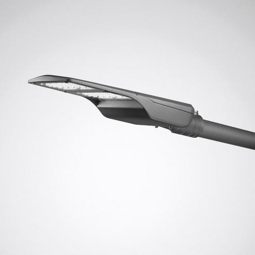 Mast-Außenleuchte für Aufsatz- und Ansatzmontage, Neigungswinkel einstellbar. Zur Aufsatz- und Ansatzmontage für Mastzopf Ø 60 mm oder Ø 76 mm. Neigungswinkel in 5 Schritten um +/- 10 ° einstellbar, skaliert. Mittels separat zu bestellender Reduzierstücke auch zur Montage an Masten mit Zopf Ø 42 geeignet. Optisches System aus einer PMMA-Linsenoptik zusammengesetzt. Abdeckung der Lichtaustrittsöffnung aus Einscheiben-Sicherheitsglas, klar. Mit asymmetrisch breit strahlender Lichtstärkeverteilung. Leuchtenlichtstrom in 3 Stufen einstellbar. Bemessungslichtstrom 10000 lm – 20000 lm, Bemessungsleistung 73 W – 165 W, maximale Leuchten-Lichtausbeute 137 lm/W. Lichtfarbe warmweiß, ähnlichste Farbtemperatur (CCT) 3000 K, allgemeiner Farbwiedergabeindex (CRI) Ra > 70. Farborttoleranz (initial MacAdam) ? 5 SDCM. Mittlere Bemessungslebensdauer L80(tq 25 °C) = 75.000 h. Leuchtenkörper aus Aluminium Oberfläche anthrazit beschichtet (DB 703). Schutzklasse (EN 61140): II, Schutzart (DIN EN 60529): IP66, Stoßfestigkeitsgrad nach IEC 62262: IK08. Mast auf Anfrage erhältlich. Windangriffsfläche fw 0,200 m2. Gewicht: 8,1 kg. Mit elektronischem Betriebsgerät, schaltbar. Das Betriebsgerät ist entsprechend der Ökodesign-Anforderungen (VO (EU) 2019/2020) austauschbar. Stoßspannungsfestigkeit Differential Mode / Common Mode: 6 kV / 10 kV. Das Produkt erfüllt die grundlegenden Anforderungen der anwendbaren EU-Richtlinien und des Produktsicherheitsgesetzes und trägt die CE-Kennzeichnung.