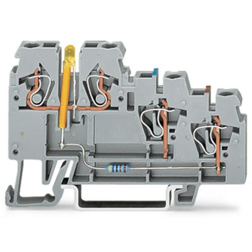 3-Leiter-Initiatorenklemme LED gelb für NPN-(minus-)schaltende Initiatoren 2,5 mm² CAGE CLAMP® 2,50 mm² grau