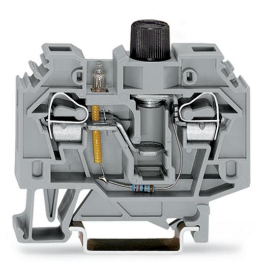 2-Leiter-Sicherungsklemme für G-Sicherungseinsatz 5 x 20 mm mit Defektanzeige durch Glimmlampe für Tragschiene 35 x 15 und 35 x 7,5 6 mm² CAGE CLAMP® 6,00 mm² grau