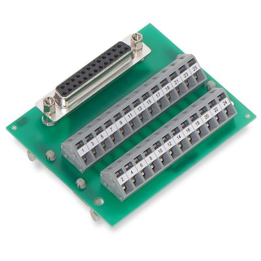 Übergabemodul Sub-Min-D Buchsenleiste 25-polig Gegenstecker mit Schneidklemmanschluss Steckrichtung vertikal Leiterplattenklemmen, 2-reihig mit Montagefüßen 2,50 mm²