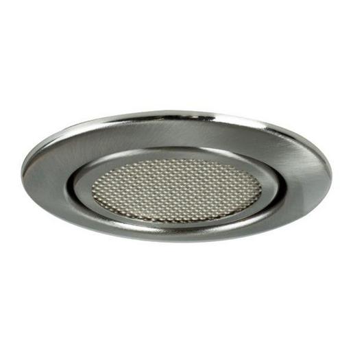 Deckeneinbau-Lautsprecher, DA 68 mm, nickel matt, rund. Ausgeführt in kompakter Bauform für werkzeuglose Schnellmontage zum Deckeneinbau. Nenn- / Musikbelastbarkeit: 3 / 4 W, Impedanz: 20 Ohm Es können bis zu 5 Lautsprecher an einen Kanal eines Hifi- Verstärkers parallel angeschlossen werden. Schalldruckpegel: 1 W / 1 m: 82 dB (bei Nennleistung 87 dB), Übertragungsbereich (-3 db): 200 – 16.000 Hz, Übertragungsbereich (-10 db): 150 – 20.000 Hz, Ausführung: Frontring (Stahl) und Lochblechabdeckung weiß (.07) oder chrom-metallisiert (.02 /.15), Nettogewicht: 0,14 kg Montage mit Einbaufedern. Anschluss durch 2-adrige Leitung mit Anschlussklemme. Material: Stahl Montageart: Einbaumontage, Montageort: Deckenmontage, Material: Stahl / Kunststoff, Schutzart raumseitig: nach DIN EN 60529: IP20, Verstellbarkeit: schwenkbar.