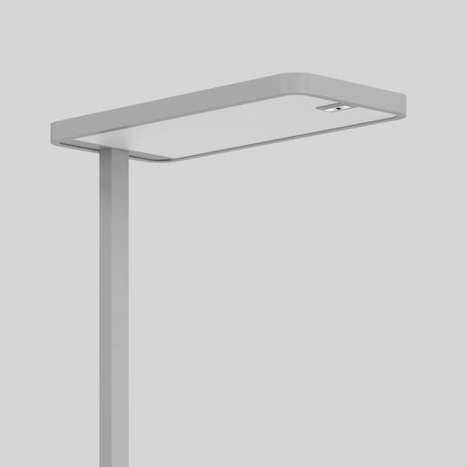 LED-Stehleuchte für Einzel- und Doppelarbeitsplatz mit flachem Leuchtenkopf. Flache Fußplatte aus Stahl für hohe Standsicherheit und platzsparende Positionierung an Büromöbeln. Kopf und Säule aus Aluminium. Ergonomisch optimal in die Leuchtensäule integrierter Folientaster. Leuchte pulverbeschichtet. Leuchtenkopf (L 750 x B 350 x H 40 mm). Fußplatte (350 x 500 mm) mit Öffnung (115 mm). Diffusor und Lightguide aus vergilbungsfreiem Kunststoff (PMMA). Lichtaustritt direkt 40%, indirekt 60%. Lichtlenkung direkt über Diffusor Kunststoff mit feiner Mikrostruktur. Lichtlenkung indirekt über Diffusor Kunststoff opal. Leuchte getrennt schaltbar/dimmbar. Ausführung mit intelligenter Anwesenheitssteuerung und Helligkeitssensorik. Betriebsgerät im Standrohr integriert. Mit Anschlussleitung 2 m inklusive Schutzkontaktstecker (Schuko). Hervorragend geeignet für Bürobereiche (UGR < 19) und Bildschirmarbeitsplätze (BAP) gem. DIN EN 12464-1.