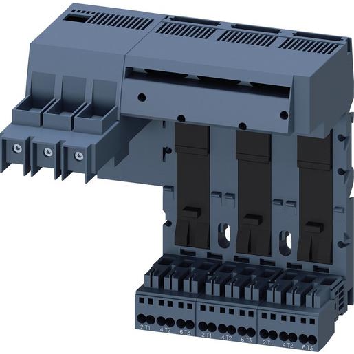 Einspeisung links Anschluss Hauptstromkreis: Eingang: Schraub, Abgang: Feder 3 Steckplätze für Kompaktabzweige Anschlussklemme maximal 50 mm2 / 70 mm2 Einfach, effizient, immer aktuell – der SIRIUS Systembaukasten.