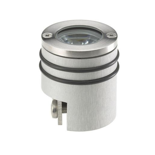 Bodeneinbau-Scheinwerfer Alu, IP67, planebene Blende V4A, POW-LED kaltweiß, 1×1 W, 350mA, 10°, mit Einbauhülse Alu, SI-Kabel 3 m