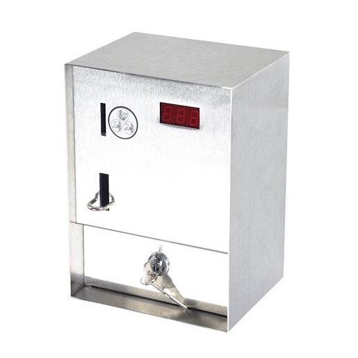 KDK Münzzeitgeber 610, In gebürsteten Edelstahlgehäuse mit zeitgesteuertem Ablauf, Schutzart: IP40, Nennspannung : 230 V AC oder 24 V AC/DC, ( nur mit externem Trafo nicht im Lieferumfang enthalten), Mit elektronischem 5-fach-Münzprüfer, verschiedene Münzen oder Wertmarken programmierbar, Zeitgesteuerter Ablauf:, digitale Zeitvorwahl, Mindestzeitvorgabe, Vorlauf-/Nachlaufzeiten frei einstellbar, Münzmengenvorwahl einstellbar, Vor-Ort-Programmierung ohne Software möglich, mit Waschmaschinenfunktion, d.h. Türöffnung auch nach Ablauf der Hauptzeit möglich, Geldkassette mit integriertem Sicherheitsschloss, Abmessungen (HxBxT): 210x155x140mm