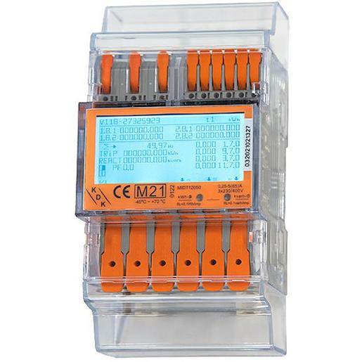 KDK Hutschienen-Drehstromzähler, Wirk-, Blind- und Scheinenergieerfassung, Messung von Lieferung und Bezug, Energieerfassung in 4 Tarifen, ein Tarifschalteingang, Rücklaufsperre pro Energieregister, Rückstellbares kWh-Zählwerk, Anzeige von Energie-Qualitätsmerkmalen, LCD-Display 6,3stellig, Anschlussklemmen in Push-in-CAGE CLAMP (R)Technik, Mbus und Modbus vor Ort auswählbar, Programmierung und Auslesung über Bluetooth 4.0 per App