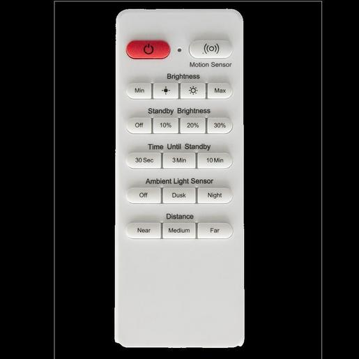 Fernbedienung für DOTLUX SURFACEsensor und SURFACEsensor-exitDiese Fernbedienung wird benötigt um den Bewegungssensor und den Tageslichtsensor der SURFACEsensor Leuchten einzustellen. Sie benötigen nur eine Fernbedienung für beliebig viele Leuchten Die Fernbedienung muss auf die Leuchte gerichtet werden, um Einstellungen zu verändern (Infrarot) Die Leuchte quittiert optisch durch ein blinken die EinstellungEs können folgende Werte eingestellt werden:- Reichweitenbereich in 3 Stufen (bis zu 8m)- Tageslichtsensor in 3 Stufen (Aus, Dämmerung, Nacht)- Leuchtdauer ( 30sek, 3min, 10min)- Standby Helligkeit ( AUS, 10%, 20%, 30%) Dauerhafte Grundhelligkeit- Sensor (An, Aus)