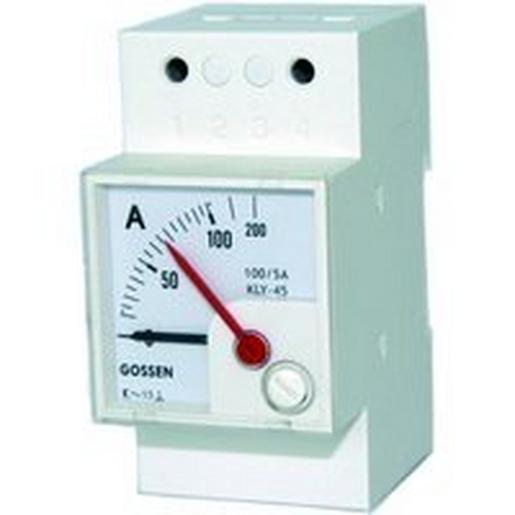 quadratische Anzeigegeräte für Wechselstrom oder Wechselspannung für Nomschienenmontage, Frontmaß 45x45mm, MB: 1/2A, Skala 100/200A
