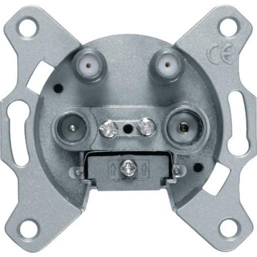 Antennen-Steckdose 4Loch 2SAT,TV,FM, Einzeldose. Antennen-Steckdose mit Steckklemmen für Gemeinschafts- und Breitbandkabelanlagen, Multiswitch-Anlagen, SAT-Einzel- und Verteileranlagen, digitale und analoge Übertragung, terrestrischen Empfang, in Sternstruktur oder entkoppelten Stichleitungen, HDTV geeignet, 2 unabhängigen SAT-Ausgängen (F-Buchsen) und 2 IEC-Ausgängen (male/female), gleichzeitigen Anschluss von Ton-, und Fernsehempfänger sowie 2 unabhängige SAT-Receiver, fernspeisbar über F-Buchse, gleichspannungsdurchlässig.