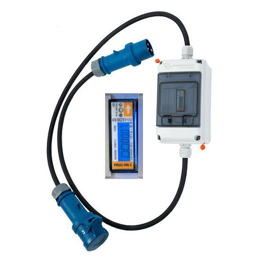 KDK-mobiler Stromzähler-Kabelzähler , als Zwischensteckerzähler mit, LC-Display mit Hintergrundbeleuchtung 5,2-stellig, Anzeige von Energie-Qualitätsmerkmalen, (Strom, Sppannung und Leistung), Spannung: 230V-50Hz, Strom: 16A, Klasse B, Temperaturbereich: -20°C bis +55°C, Schutzart: IP44, mit 3-poligem CEE-Stecker und Kupplung, mit MID-Konformitätserklärung, Eichgültigkeitsdauer: 8 Jahre