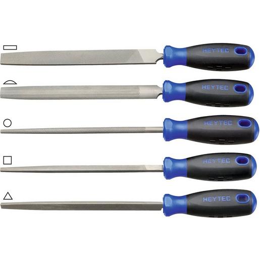 Werkstattfeilen mit ergonomischem 2-Komponenten Softgriff und integrierten Aufhängeösen Hieb 2 Satz bestehend aus: Flachfeile, Halbrundfeile, Dreieckfeile, Vierkantfeile und Rundfeile Satz 5-tlg. in Rolltasche 8/200mm