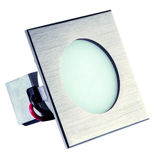 LED-Wandeinbaustrahler für Schalterdosen für die Innenanwendung, IP40 Gehäuse: Aluminium-Druckguss, Schutzscheibe Glas Gehäusefarbe: eisen gebürstet nicht schwenkbar Ausstrahlwinkel: 80° Leistung: 1 W Lichtfarbe: 3000 K Lichtstrom: 55 lm CRI: >90 Lebensdauer L70: >= 50.000 h Betriebsspannung: 230 V AC Schutzklasse I Einbautiefe: 45 mm Einbau-Durchmesser: 55 mm Außenmaße: 80 x 80 mm nicht dimmbar