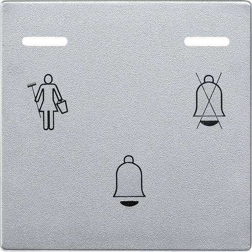 Elektronische Klingeltaste mit zwei LED-Anzeigen Klingel durchgestrichen/Zimmermädchen. Für den Einsatz im Hotel als Klingeltaster an den Zimmertüren. Ansteuerungsmöglichkeiten der beiden LED-Anzeigen (Bitte nicht stören – rote LED, Bitte Zimmer aufräumen – grüne LED) über entsprechenden Schalter-Einsatz und Wippe für Serienschalter mit Aufdruck. Es können beliebige Wechselspannungsläutewerke mit einer Stromaufnahme von 10-500 mA angeschlossen werden. Die Versorgung erfolgt über einen handelsüblichen Sicherheitstransformatorxx Mit Kurzschluss- und Überspannungsschutz. Mit Schraubklemmen. Eingangsspannung min. AC 6 V, max. AC 24 V (SELV). Schaltstrom min. 10 mA, max. 500 mA. Anschlussklemmen Schraubklemmen für 0,8-1,5 mm². Zu komplettieren mit Wippe für Serienschalter mit Aufdruck System M 4326xx, 4356xx Material Thermoplast edelmatt. Farbe aluminium.