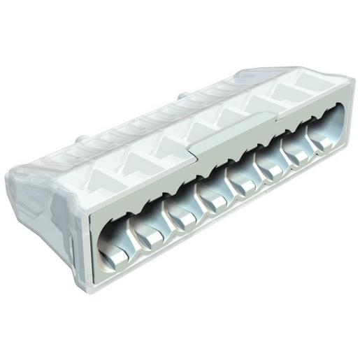Geprüft nach EN 60998Schraubenlose Klemme zur Verbindung von eindrähtigen Leitern.Nennquerschnitt: 8 x 0,5 mm² – 2,5 mm² eindrähtige Leiter8 x 1,5 mm² – 2,5 mm² starre mehrdrähtige LeiterNennspannung 450 VNennstrom 24 AAbisolierlänge: 8-9 mmPrüföffnung: Phasenprüfer und Prüfstift (max. Ø 2 mm)Max. zulässige Umgebungstemperatur gemäß EN 60998: 90°C.