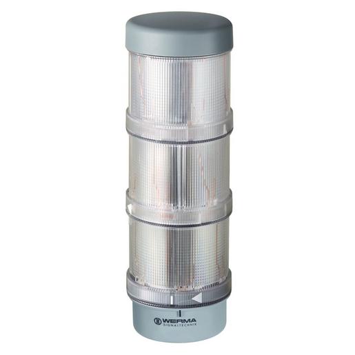 Fertig konfigurierte Signalsäule KombiSIGN 72 im DesignLOOK in rot/gelb/grün Komplette Signalsäule mit nur einer Bestellnummer Für Boden- und Winkelmontage geeignet TwinLIGHT-Leuchtelemente vereinen zwei Leuchtbildfunktionen (Dauer- und Blinklicht) in einem Element Leuchtfarben werden über farbige LEDs erzeugt Winkel für Winkelmontage bitte separat bestellen