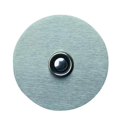 Albert-Klingelplatte 690947 aus Edelstahl, mit Edelstahl-Klingelknopf sowie Bolzenbefestigung. Ausmaße: d 80 x 6 mm