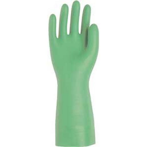 Nitrilhandschuh in Top Qualität velourisiert für Arbeiten mit Säuren, Laugen, Ölen, Fetten, lebensmittelgeeignet silikonfrei Farbe: grün Stärke 0,38 mm, Länge 32 cm.