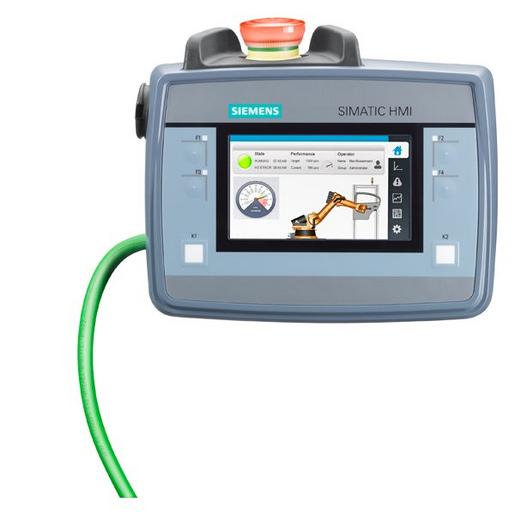 SIMATIC HMI KTP400F Mobile mit integriertem Zustimmtaster, Not-Aus-Schalter, Touch und Tastenbedienung, 4 Widescreen-TFT-Display, PROFINET Schnittstelle, projektierbar ab WinCC Comfort V13 SP1 mit HSP Mobiles HMI mit Standard Funktionalität oder Safety Integrated.