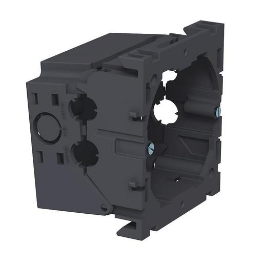 Frontrastende Geräteeinbaudose für Schalter-Systeme, mit abklappbarem und bei Bedarf auch entfernbarem Unterteil zum zeitsparenden Leitungsanschluss, mit Zuführungsöffnungen für Leitungsdurchmesser bis 14 mm. Halogenfreie Ausführung.
