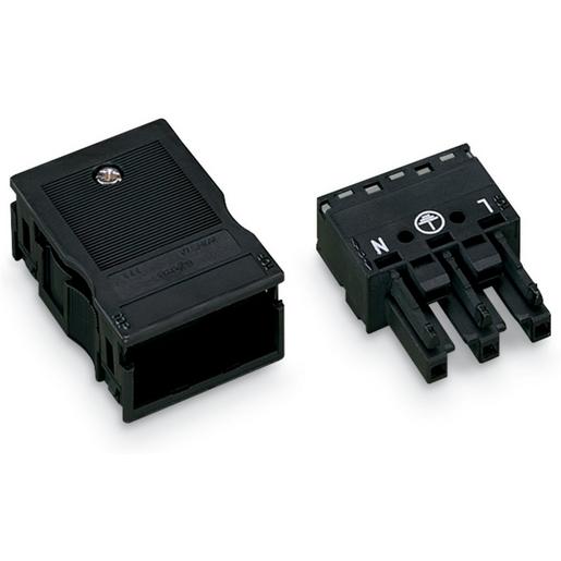 Buchse mit Zugentlastungsgehäuse 3-polig Kod. A 4,00 mm² schwarz