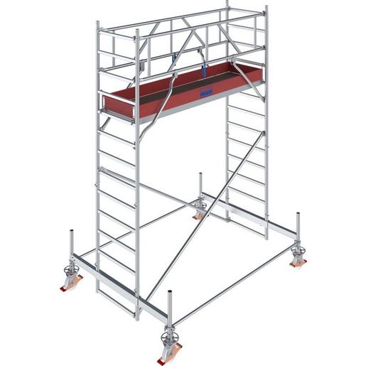 + Das universelle Alu-Fahrgerüst für Arbeiten bis zu einer max. Arbeitshöhe von 14,50 m (bei Gerüstfeldlänge 2,00 m bis zu 12,50 m)