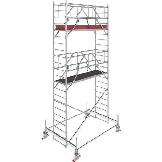 + Das universelle Alu-Fahrgerüst für Arbeiten bis zu einer max. Arbeitshöhe von 14,50 m (bei Gerüstfeldlänge 2,00 m bis zu 12,50 m)