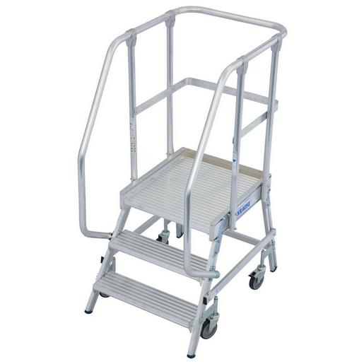 Fahrbare, einseitig begehbare Aluminium-Podestleiter mit tiefen Stufen,