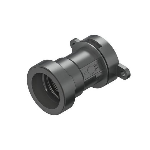 Illuminations-Fassung E27, mit Dichtring, mit vormontierten Einwegschrauben, mit Befestigungssockel, zur Herstellung von Lichterketten nach DIN VDE 0100 Teil 740 außerhalb des Handbereiches, zum Anschluss an 2 adrige Illuminationsflachleitung H05RNH2-F (13,5 x 5,5 mm ± 0,5 mm), nach DIN EN 50525-2-82. Bitte beachten: Montage nur mit nach unten gerichteten Leuchtmitteln. verwendbar für : Allgebrauchsglühlampen mit Außenkolben A55 Abmessung (ca. Maße) H : 53 Fassung : E27 Außen-Ø : 37 mm Befestigungsloch : Ø 4,3 mm Schutzart : IP44 max. Leistung : 40 W Werkstoff : TPE (Thermoplastische Elastomere) Werkstoff Dichtring : Silikonkautschuk Farbton : schwarz