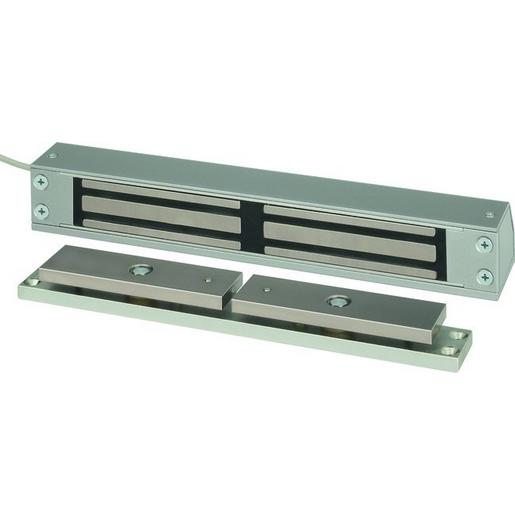 Kompakt-Flächenhaftmagnet Modell 827, Flächenhaftmagnet in kompakter Bauweise zur verdeckten Absicherung von Türen in Rettungswegen. Formstabiles Aluminium-Gehäuse für Einbaumontage inkl. Haftgegenplatte. Der Überwachungskontakt z.B. Modell 10365-6 ist nicht im Lieferumfang enthalten., Mit Gegenplatte mit Hall-Sensor 12/24 V DC Haltekraft 2500 N