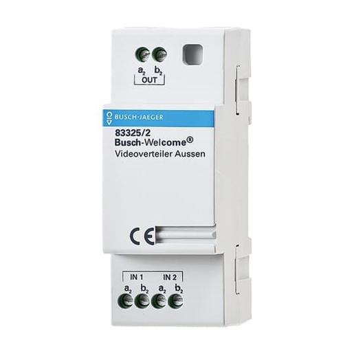Videoverteiler Außen, Türkommunikation, Systemgeräte, Videoverteiler Außen Zum Anschluss mehrerer Aussenstationen Video an die Systemzentrale. Schutzart Gerät: IP 20 Temperaturbereich Gerät: -5 °C bis 45 °C Maße (H x B x T): 90 mm x 36 mm x 65 mm Teilungseinheit: 2 TE