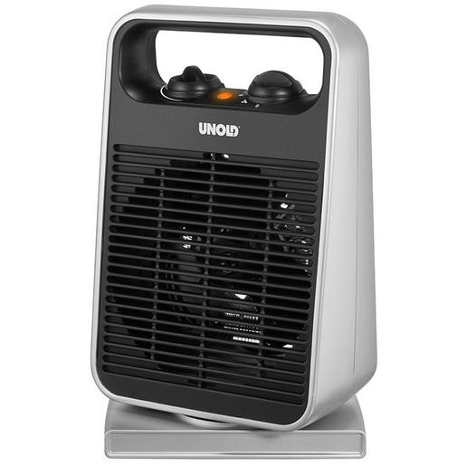 Er macht bei Bedarf viel heiße Luft, der Heizlüfter Rotate von UNOLD® Fan + Heat. Dabei verteilt er die warme Luft besonders gleichmäßig im Raum, denn das Gerät dreht sich automatisch um 75°.