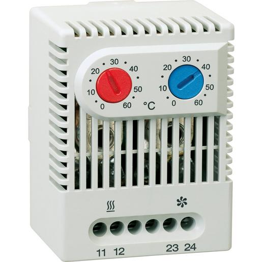 Zwillings Thermostat 0 bis 60° C Systemklimatisierung SIVACON 8MF / 8MR – für Klima im Schrank. Die Systemklimatisierung spezifischen Anforderung gerecht zu werden. SIVACON 8MR stellt den störungsfreien Betrieb der im Schrank installierten elektrischen und elektronischen Einbaugeräte selbst unter widrigen Umgebungsbedingungen sicher. Sie verhindert unter anderem Kondensatbildung oder Frostschäden und schützt vor daraus resultierenden Funktionsstörungen. Das Portfolio reicht von Filterlüftern über Kühl- und Heizgeräte bis zu Thermostaten. Alternativ können in Betriebsräumen belüftete Schränke, bei welchen die Systemklimatisierung durch natürliche Konvektion sichergestellt wird, eingesetzt werden.