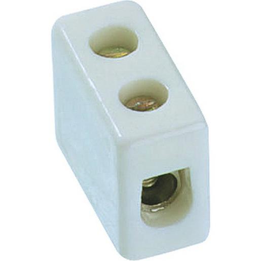 Porzellan-Buchsenklemme bis 4mm² 2-polig nicht brennbar, temperaturbeständig, formstabil bis ca. 1000 °C Steatit unglasiert C220, IEC 672-1 mit Bef. loch in der Mitte Farbe: Beige Dauergebrauchstemperatur: 200°C Bemessungs-isolationsspannung: 450V Prüfstrom: 32A Klemmbereich: 2,5 – 10 mm², Lochdurchmesser 4mm Klemmkörper: Messing galvanisch vernickelt Schrauben: Stahl, galvanisch verzinkt blau passiviert, Schrauben werden ganz eingedreht, M3,5 LxBxH: 24x22x21mm