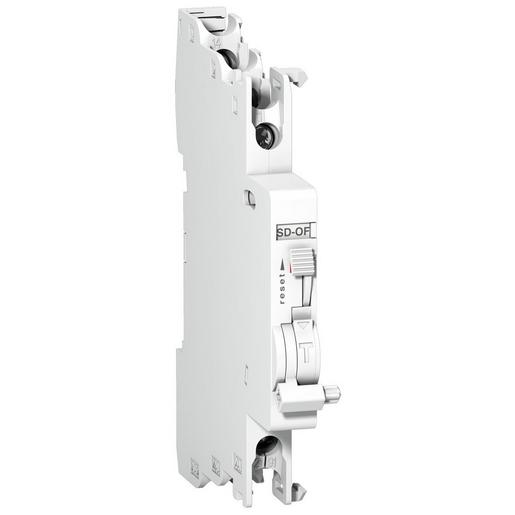 Hilfsschalter+Fehlermeldeschalter/Hilfsschalter Acti 9 OF/SD+OF. 2 Wechsler, Betriebsspannung (Ue) 23-415V AC / 24-130V DC. Es kann sowohl die Schaltstellung als auch die Fehlerauslösung gemeldet werden. Einer der beiden Wechsler kann vor der Montage durch den seitlichen Wahlschalter als OF oder SD ausgewählt werden. Die Einstellung ist frontseitig sichtbar. Der Hilfsschalter+Fehlermeldeschalter/Hilfsschalter OF/SD+OF erfüllt folgende Normen- IEC/EN 60947-5-1.