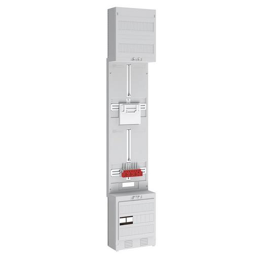 Zählerplatz bestehend aus: 1x 3-Punkt-Befestigung mit 35 mm², Zählersteckklemme 100 A und 5-poliger Hauptleitungsabzweigklemme, 1x Zählerreserveplatz, NAR mit Sammelschienensystem 5-polig, landesspezifische Ausführung für Luxemburg