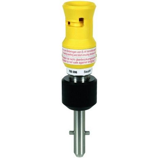 Adapter Spindel-Querstift / Spindel-Querstift lang. Geeignet zum Aufsetzen auf Erdungsstangen mit Alu-Trichterkupplung für Spindel mit Querstift (Bajonettverriegelung), um Klemmen mit Spindel mit Querstift lang aufzunehmen. Die Arretierungsmutter ermöglicht die Fixierung des Adapters auf der Erdungsstange. Zubehör für Erdungsstangen, Ausführung Spindel mit Querstift lang.