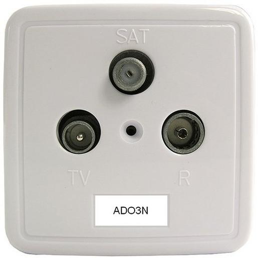 DIe Antennendose verfügt über einen kombinierten Eingang (UKW/TV/SAT) und 3 Augänge (UKW – TV – SAT). Sie besticht durch eine hervorragende Entkopplung zwischen den Ausgängen, einem am unteren Ende offenen Gehäuserahmen, DC-Durchlass vom SAT-Anschluss zum Eingang. Sie ist kompatibel mit Koaxialkabeln mit einem Manteldurchmesser 4,3 – 7mm. Im Lieferumfang enthalten sind Abdeckplatte, Aufputzrahmen und Schrauben für die Aufputzmontage.