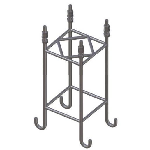 Ankerkorb mit Gewindebolzen zum Einbetonieren, passend zur Flanschplatte der Tele-Blitzschutzmaste. Ausführung klein, für Maste mit einer Höhe über Flur 13,35 bis 19,35 m.