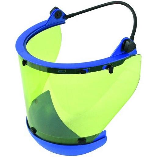 Störlichtbogengeprüfter Schutzschirm DEHNcare APS mit Spannband und Kinnschutz für Wartungs- und Instandhaltungsarbeiten an elektrischen Anlagen. Passend für alle gängigen Elektriker-Schutzhelme. Zertifiziert nach den Anforderungen der PSA-Verordnung (EU) 2016/425 zum Inverkehrbringen der persönlichen Schutzausrüstung. Hoher Tragekomfort. Hohe Schutzwirkung und geringer Verschleiß durch energieabsorbierende Nanopartikel. Beste Sicht durch Antibeschlag ? Beschichtung und hoher Lichtdurchlässigkeit. Störlichtbogengeprüft nach BG-Prüfgrundsatz GS-ET-29: Klasse 2 mit 423 kJ / m2 und ASTM F2178: 12 cal / cm2