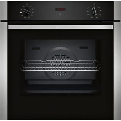 Backofentyp und Heizart Backofen mit 8Beheizungsarten: CircoTherm®, Ober-/Unterhitze, Thermogrill, Großflächengrill, Pizzastufe, Unterhitze, CircoTherm® sanft, Base Steam Temperaturregelung von 50 °C – 275 °C Garraumvolumen: 71 l Zubehörträger / Auszugssystem: Einschubebenen: 4 Auszug nachrüstbar Design Drehwähler, oval, Voll versenkbare Bedienknebel Garraum: Email grau Reinigung Easy Clean (manuell) Vollglas-Innentür Komfort LED Display (rot), mechanische Steuerung Easy Clock Optische Aufheizkontrolle Autostart Profilgriff Schnellaufheizung Halogenleuchte Wasserschale mit einem Fassungsvermögen von 250 ml Kühlgebläse Edelstahl-Lüfterrad Zubehör 1 x Kombirost, 1 x Universalpfanne Umwelt und Sicherheit Sehr geringe Fenstertemperatur Individuell einstellbare Kindersicherung Technische Info: Länge des Anschlusskabels: 120 cm Nennspannung: 220 – 240 V Gesamtanschlusswert Elektro: 3.4 kW Energieeffizienzklasse (gem. EU Nr. 65/2014): A(auf einer Energieeffizienzklassen-Skala von A+++ bis D) Energieverbrauch pro Zyklus im konventionellen Modus:0.97 kWh Energieverbrauch pro Zyklus im Umluft-Modus:0.81 kWh Zahl der Garräume: 1 Wärmequelle: elektrisch Innenraumvolumen:71 l Maße Gerätemaße (HxBxT): 595 x 594 x 548mm Nischenmaße (HxBxT): 595 mm x 560 mm x 550 mm ?Maße und Einbauhinweise zu diesem Gerät gemäß technischer Zeichnung beachten? Wir empfehlen Ihnen, Komplementär-Produkte innerhalb der Produktserie N30 zu wählen, um die bestmögliche Einbausituation Ihrer Einbaugeräte zu gewährleisten.
