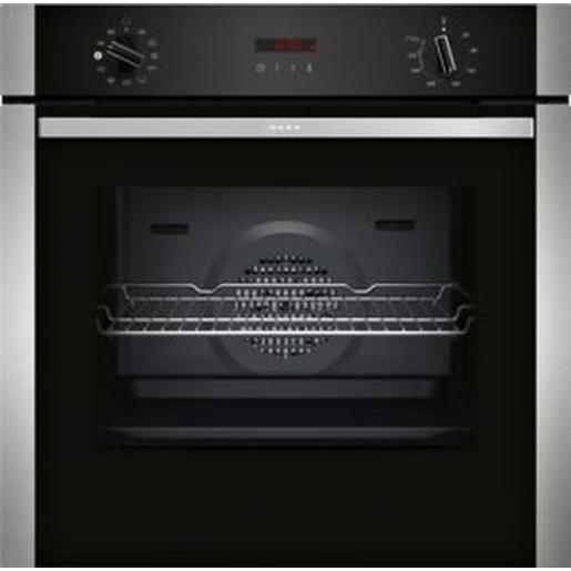 Backofentyp und Heizart Backofen mit 8Beheizungsarten: CircoTherm®, Ober-/Unterhitze, Thermogrill, Großflächengrill, Pizzastufe, Unterhitze, CircoTherm® sanft, Base Steam Temperaturregelung von 50 °C – 275 °C Garraumvolumen: 71 l Zubehörträger / Auszugssystem: Einschubebenen: 4 Auszug nachrüstbar Design Drehwähler, oval, Voll versenkbare Bedienknebel Garraum: Email grau Reinigung Pyrolytische Selbstreinigung Easy Clean (manuell) Vollglas-Innentür Komfort LED Display (rot), elektronische Steuerung Easy Clock Optische Aufheizkontrolle Autostart Ist-Temperaturkontrolle Profilgriff Schnellaufheizung Backofenbeleuchtung abschaltbar, Halogenleuchte Wasserschale mit einem Fassungsvermögen von 250 ml Kühlgebläse Edelstahl-Lüfterrad Infotaste Zubehör 1 x Kombirost, 1 x Universalpfanne Umwelt und Sicherheit Sehr geringe Fenstertemperatur Niedrige Türtemperatur während der pyrolytischen Reinigung Individuell einstellbare Kindersicherung Türverriegelung bei Pyrolysebetrieb Automatische Sicherheitsabschaltung Technische Info: Länge des Anschlusskabels: 120 cm Nennspannung: 220 – 240 V Gesamtanschlusswert Elektro: 3.6 kW Energieeffizienzklasse (gem. EU Nr. 65/2014): A(auf einer Energieeffizienzklassen-Skala von A+++ bis D) Energieverbrauch pro Zyklus im konventionellen Modus:0.99 kWh Energieverbrauch pro Zyklus im Umluft-Modus:0.81 kWh Zahl der Garräume: 1 Wärmequelle: elektrisch Innenraumvolumen:71 l Maße Gerätemaße (HxBxT): 595 x 594 x 548mm Nischenmaße (HxBxT): 595 mm x 560 mm x 550 mm ?Maße und Einbauhinweise zu diesem Gerät gemäß technischer Zeichnung beachten? Wir empfehlen Ihnen, Komplementär-Produkte innerhalb der Produktserie N30 zu wählen, um die bestmögliche Einbausituation Ihrer Einbaugeräte zu gewährleisten.