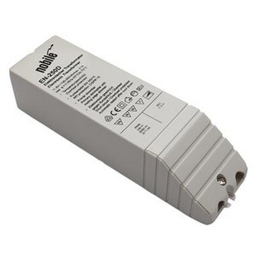 Unabhängiger Transformator mit abgedeckten Schraubklemmen. Besonders geeignet für den Einsatz in kleinen Hohlräumen, mit vergrössertem Anschlussraum für komfortable Verdrahtung. Passt in Downlightöffnungen ab Ø 45 mm (150VA: Ø 52 mm, 200/250VA: Ø 68 mm). Dimmbar mit allen gängigen Phasenabschnittsdimmern. Thermoschalter für exaktes Abschalten bei eventueller Überhitzung. Wirkleistungsfaktor: cos phi ? 0,98